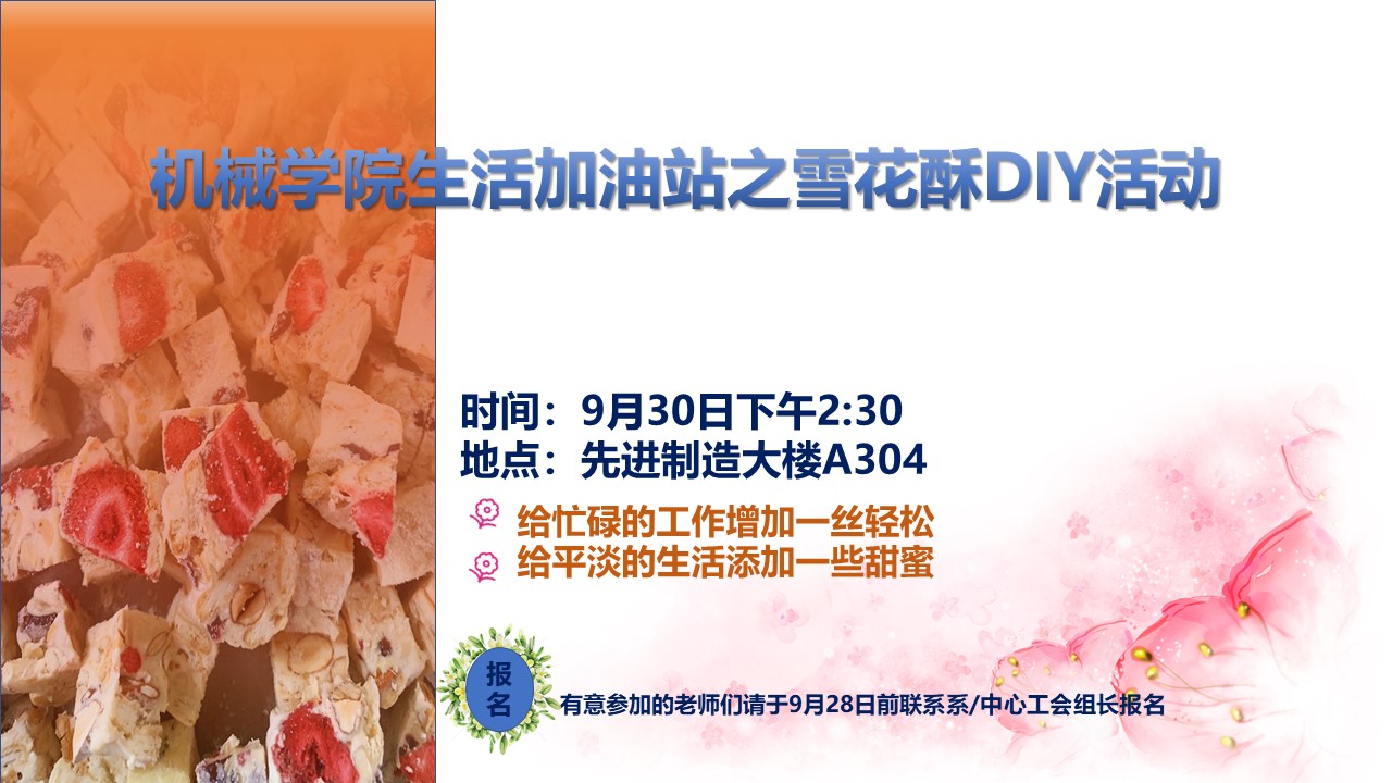 09.30 02:00PM 机械学院“生活加油站”之雪花酥DIY活动