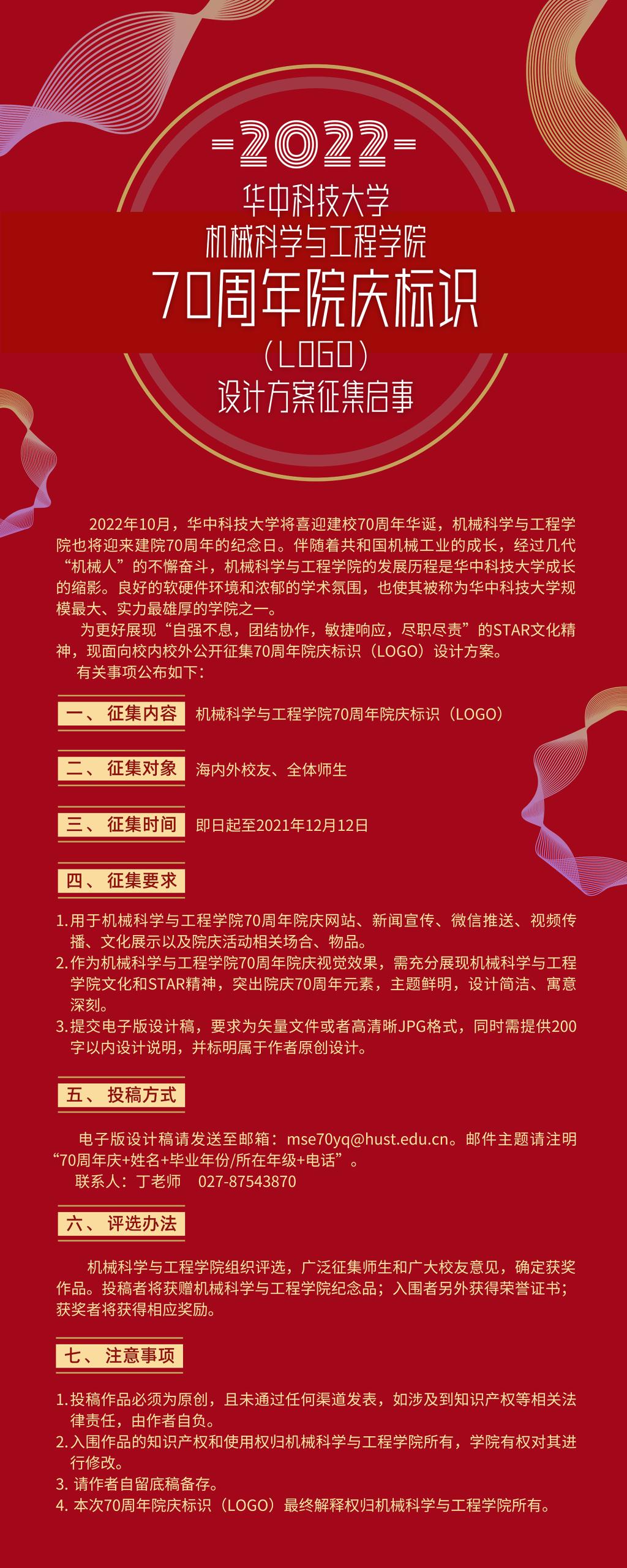 电子版设计稿请发送至邮箱:mse70yq@hust.edu.cn