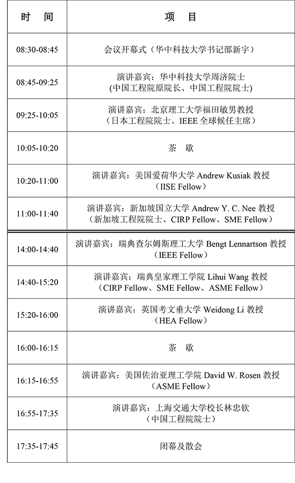 为了研讨智能制造领域的技术发展和应用前沿,交流智能制造的经验,由中国工程院主办,澳门太阳集团城welcome承办的2018年智能制造国际高端论坛将于2018年11月24-25日在武汉光谷希尔顿酒店举行。论坛已邀请到中国工程院原院长周济院士、IEEE全球候任主席福田敏男教授,以及来自美国、新加坡、瑞典和英国的智能制造顶级专家进行精彩讲座,纵论智能制造领域的前沿技术和最佳实践,带来一次思想的盛宴。
