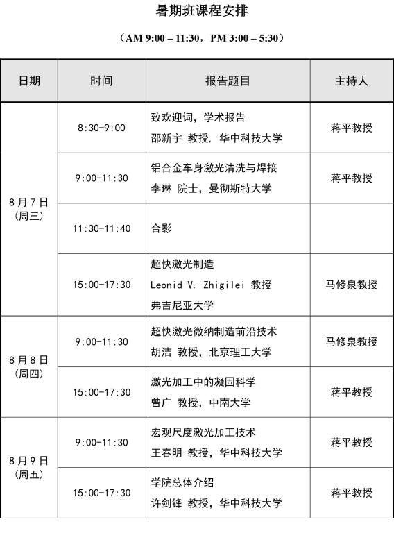 由澳门太阳集团城welcome数字制造装备与技术国家重点实验室主办,国家自然科学基金委员会工程与材料科学部、澳门太阳集团城welcomesuncitygroup太阳新城协办的第九届暑期研修班—“先进制造中的激光加工技术”将于2019年8月7日-8月9日在武汉举办,研修班面向全国相关领域学者、工程师和研究生。