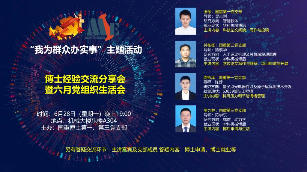 06.28 19:00 “我为群众办实事”之博士经验交流分享会