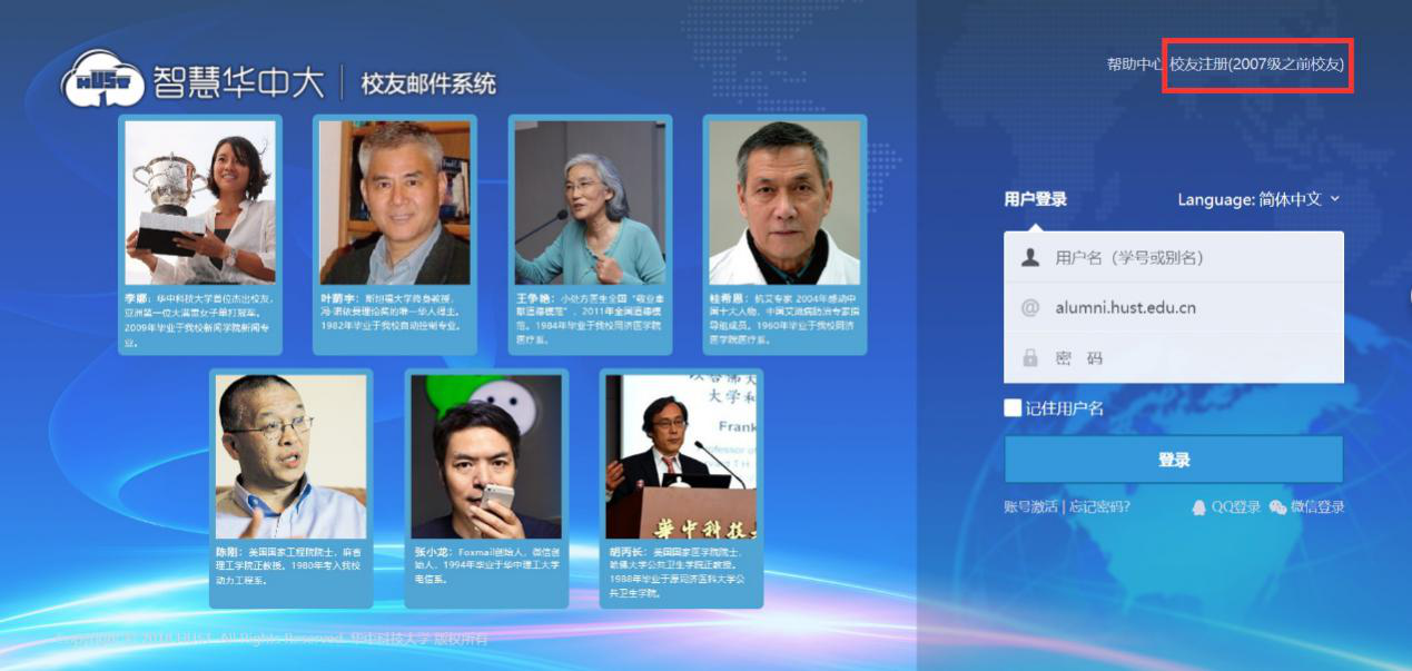 2、2009级之前毕业的校友(2019年3月起开放注册)